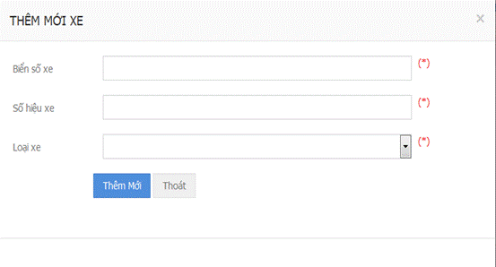 Bước 5 : Kích vào nút Thêm mới để thêm mới xe vào hệ thống
